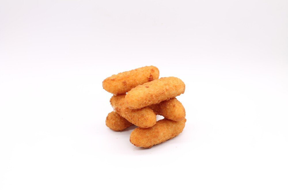 Палочки из моцареллы в панировке, обжаренные во фритюре. По желанию, можно добавить топпинг на выбор: сметана и лук/копченая паприка/сыр.